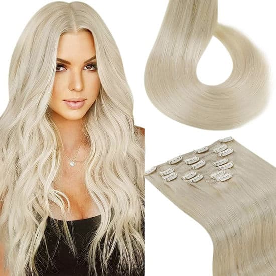 Extensii de păr clip-on blond deschis platinat: Set complet 12 piese cu 20 de clipsuri