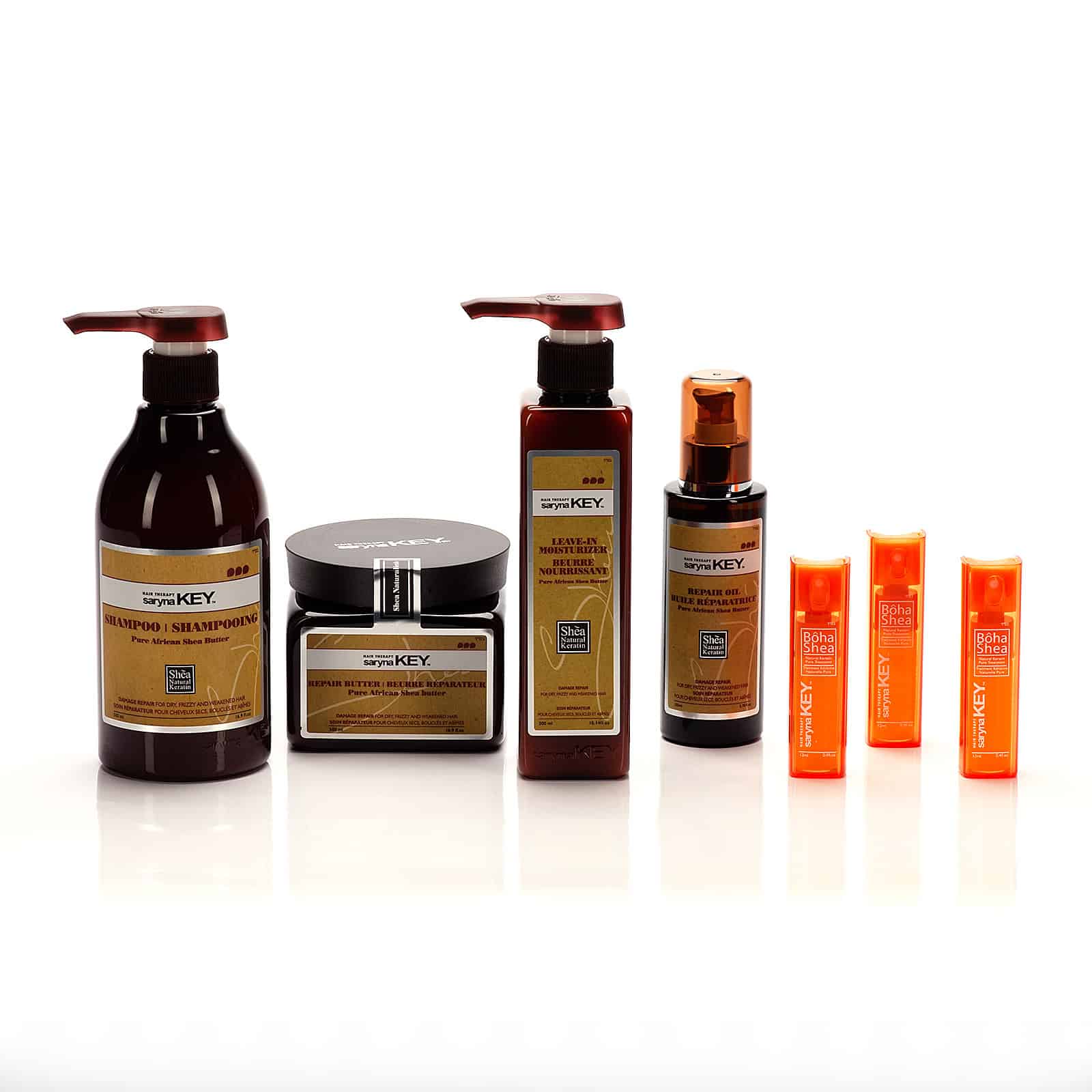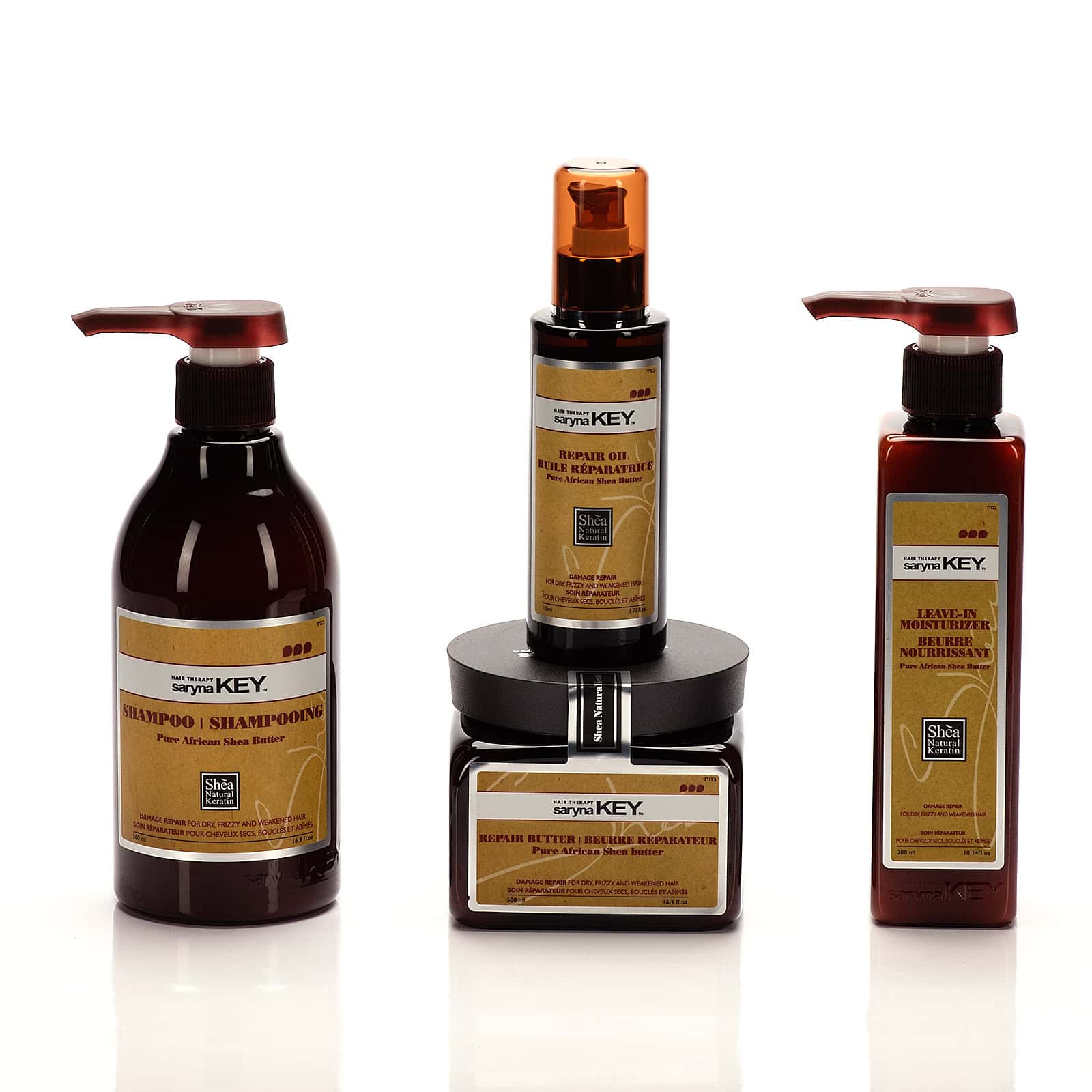 Descoperă colecția noastră Damage Repair Collection, special creată pentru a trata, restaura și revigora în mod optim părul uscat, creț și deteriorat. Formula sa conține o concentrație ridicată de unt de shea, bogat în vitaminele A, E și F, aminoacizi și cheratină, pentru a asigura un păr moale ca mătasea, flexibil și strălucitor. Aminoacizii din compoziție stimulează proteinele vitale pentru repararea daunelor, oferindu-ți un păr sănătos și revitalizat.